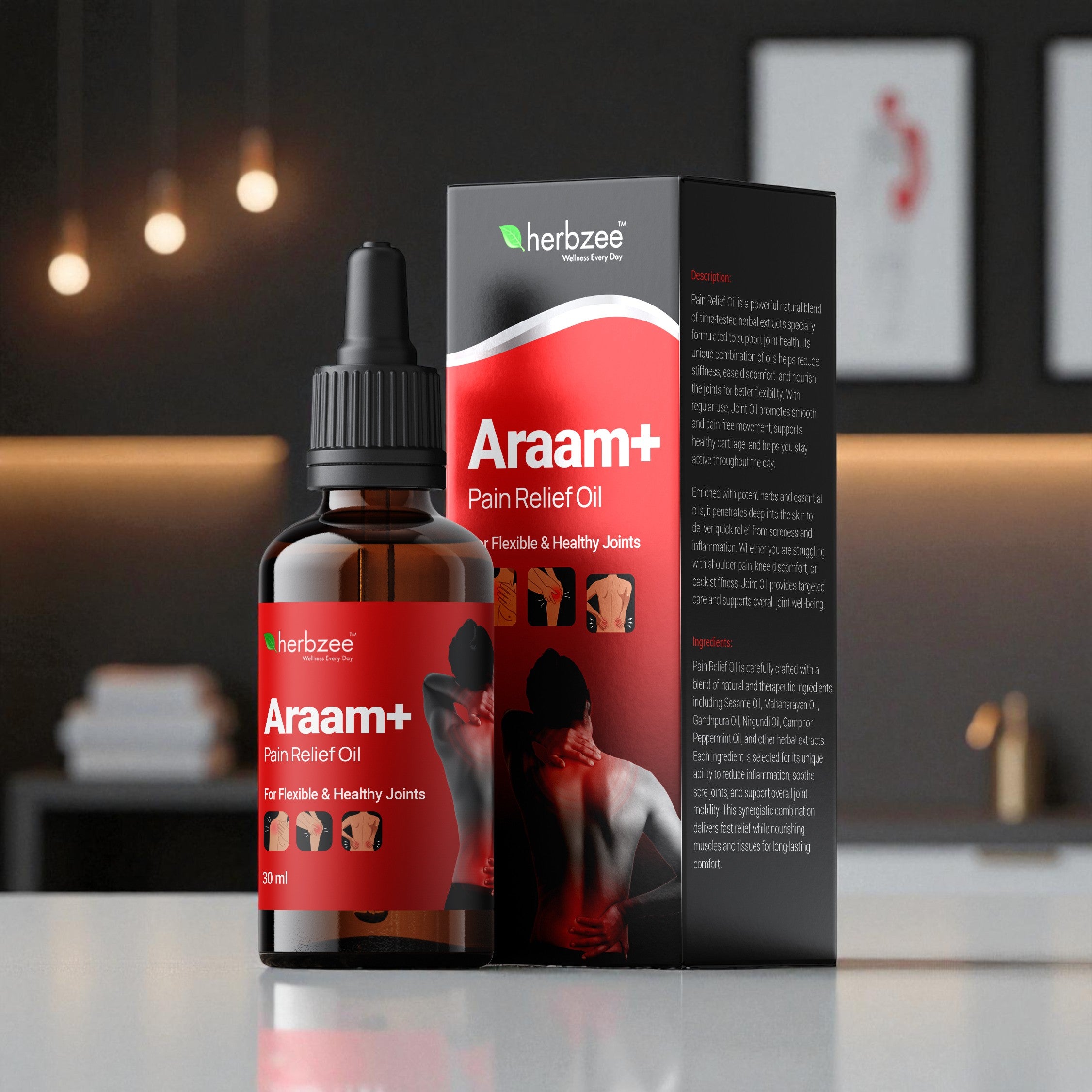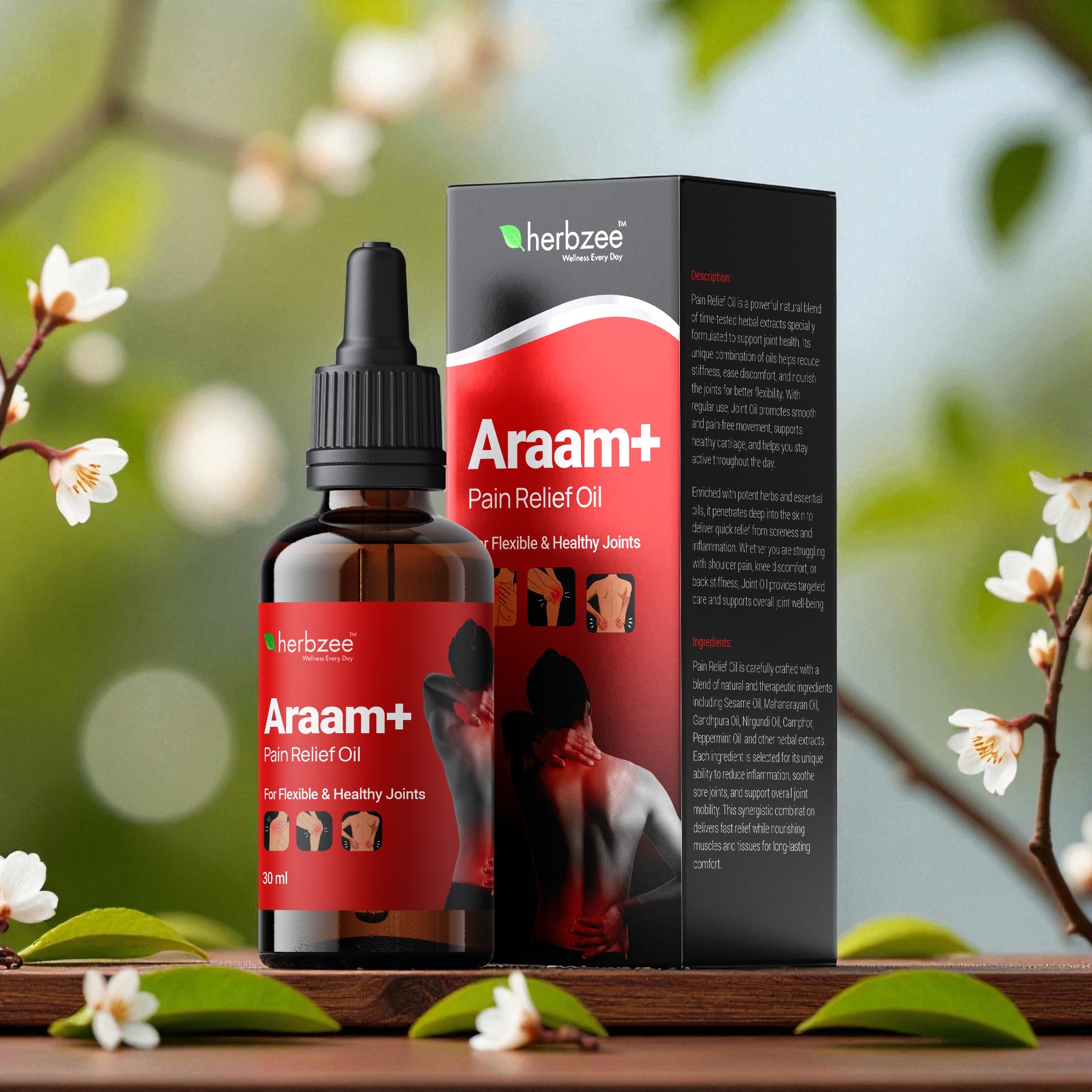 Araam+ combines trusted herbal oils like Eucalyptus, Peppermint, Ginger and Clove with warming botanicals such as Camphor, Mustard and Turmeric. These ingredients have been traditionally used to support comfort, ease muscle tightness and promote smoother movement.